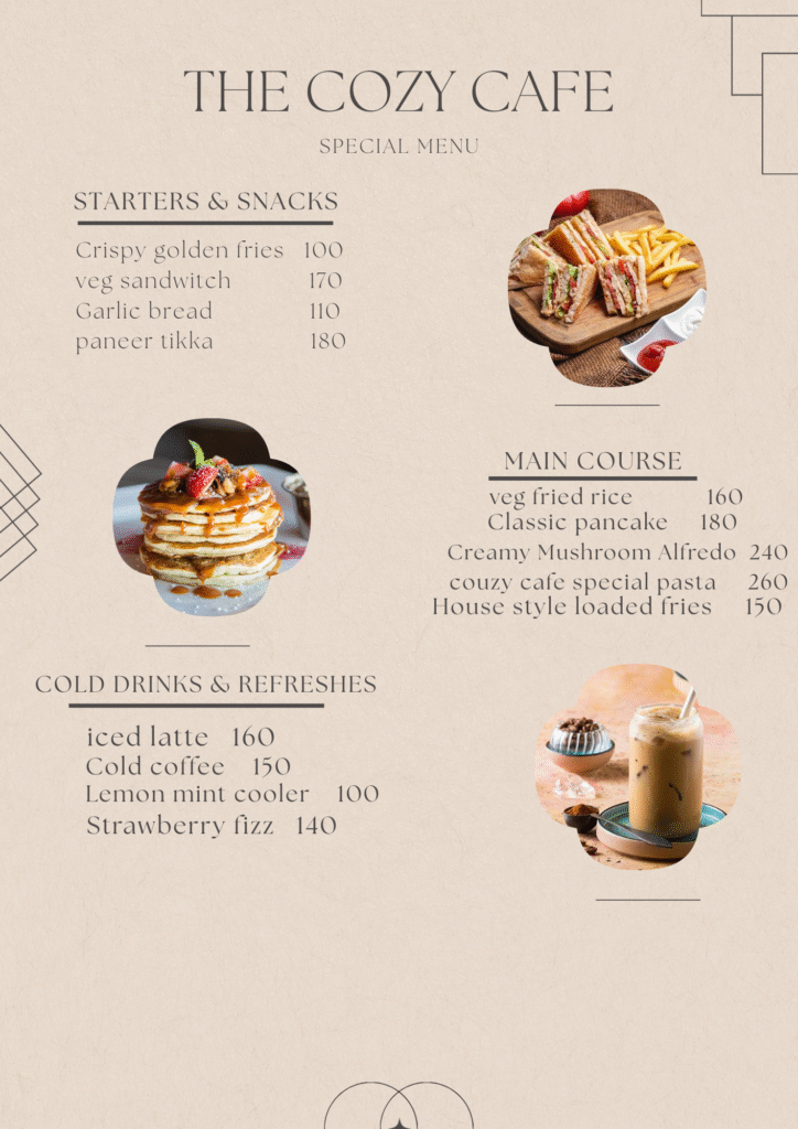 the cozy cafe menu